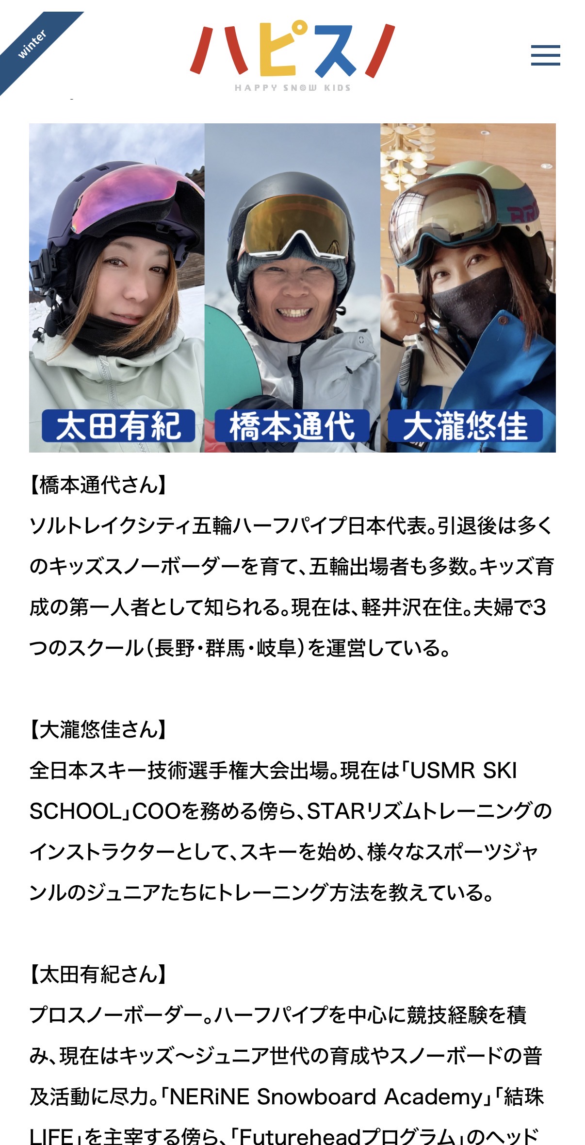 USMR SKI SCHOOL COO大滝悠佳さん、